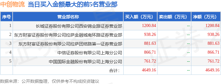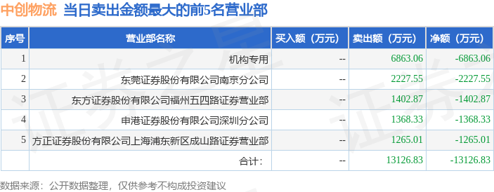 4月8日中创物流(603967)龙虎榜数据: 机构净卖出6863.06万元